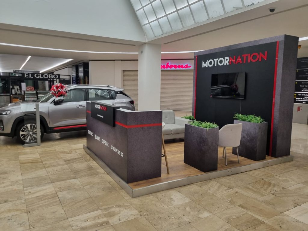 El diseño del stand se caracteriza por su enfoque moderno y tecnológico, utilizando materiales de alta calidad y acabados excepcionales que resaltan la potencia y el dinamismo de los vehículos de Motor Nation. Desde la disposición del espacio hasta los detalles más pequeños, cada elemento fue pensado para transmitir la innovación, la fuerza y el carácter de la marca.